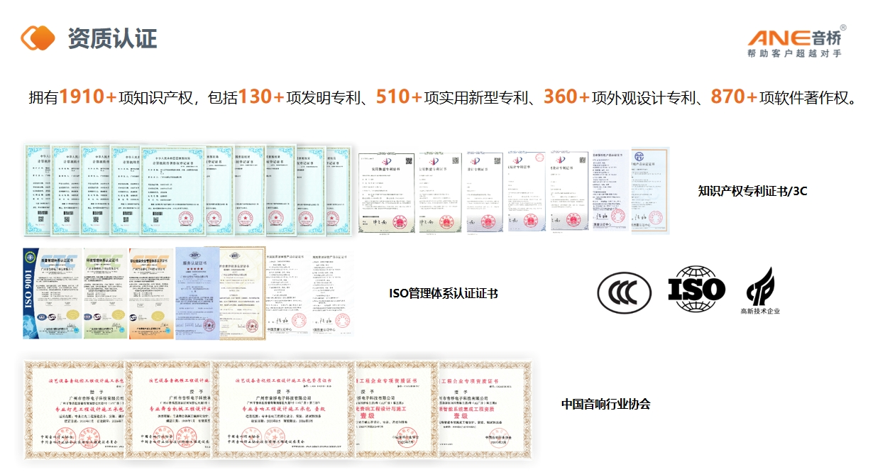 ANE音橋自創(chuàng)立以來,便將質(zhì)量保障作為企業(yè)的核心使命,始終專注于音視頻領(lǐng)域,恪守“責(zé)任、探索、合作、奮斗”的核心價(jià)值觀,不斷追求卓越,致力于在每一個(gè)環(huán)節(jié)實(shí)現(xiàn)質(zhì)量的極致。在智能化的時(shí)代背景下,我們堅(jiān)持工匠精神,18年的行業(yè)深耕,讓我們積累豐富的經(jīng)驗(yàn),構(gòu)建了完善的技術(shù)研發(fā)體系。我們在公共廣播、會(huì)議系統(tǒng)、專業(yè)擴(kuò)聲等關(guān)鍵領(lǐng)域,擁有深厚的技術(shù)積累,致力于為客戶提供從咨詢、設(shè)計(jì)到實(shí)施、維護(hù)的一站式服務(wù),確保消費(fèi)者的權(quán)益得到充分保障。