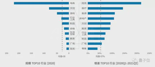 在第二梯隊(duì),教育、制造、廣電為代表的傳統(tǒng)行業(yè),用云量規(guī)模和增速都躋身前10,上云的潛力正在加快釋放。